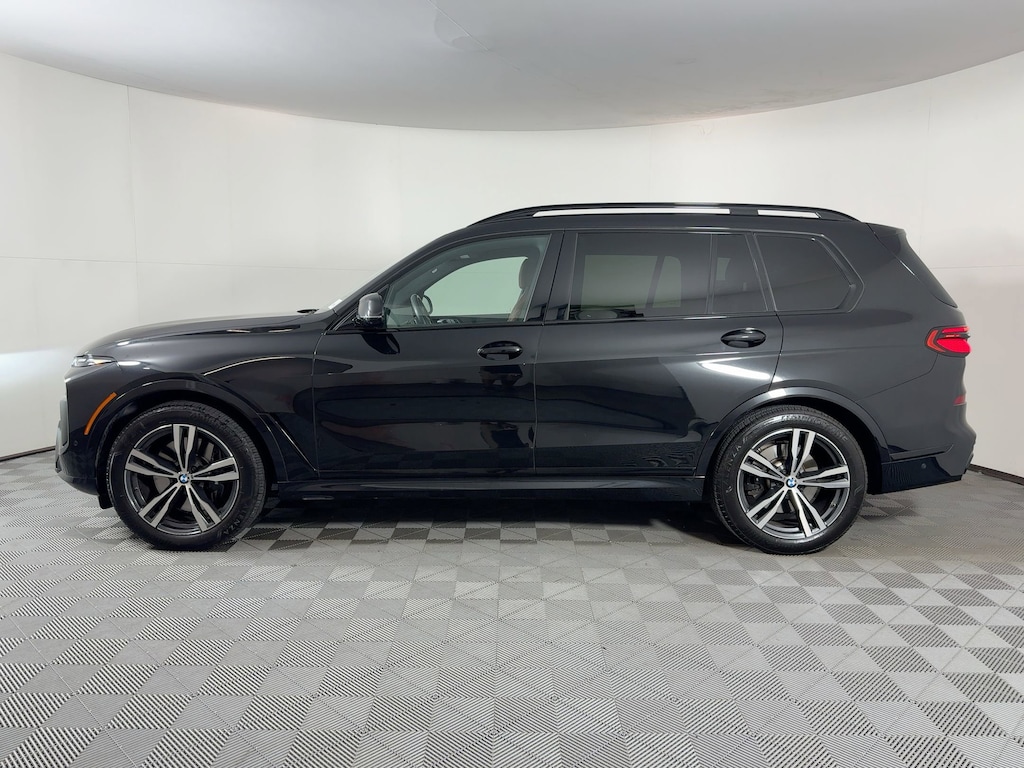WHEELS: 21" X 9.5" DOUBLE-SPOKE BI-COLOR ORBIT GREY -inc: (Style 754M), PREMIUM PACKAGE -inc: Gesture Control, Rear Electric Side Window Shades, Soft-Close Automatic Doors, harman/kardon Surround Sound System, PARKING ASSISTANCE PACKAGE -inc: Parking Assistant Professional, Surround View w/3D View, Drive Recorder, M SPORT PROFESSIONAL PACKAGE -inc: M Sport Brakes w/Black Calipers, M Sport Package Pro, Extended Shadowline Trim, M Sport Exhaust System, Illuminated Kidney Grille, M SPORT PACKAGE -inc: Shadowline Exterior Trim, Wheels: 21" x 9.5" Double-Spoke Bi-Color Orbit Grey, (Style 754M), Fineline Black Wood Trim, M Steering Wheel, Anthracite Alcantara Headliner, M Sport Package (337), Without Lines Designation Outside, Aerodynamic Kit, FINELINE STRIPE BROWN HIGH GLOSS WOOD TRIM, COFFEE, SENSAFIN UPHOLSTERY, CLIMATE COMFORT PACKAGE -inc: Front Ventilated Seats, 5-Zone Automatic Climate Control, Front & Rear Heated Seats, BLACK SAPPHIRE METALLIC, ANTHRACITE ALCANTARA HEADLINER. This BMW X7 has a strong Intercooled Turbo Gas/Electric I-6 3.0 L/183 engine powering this Automatic transmission.