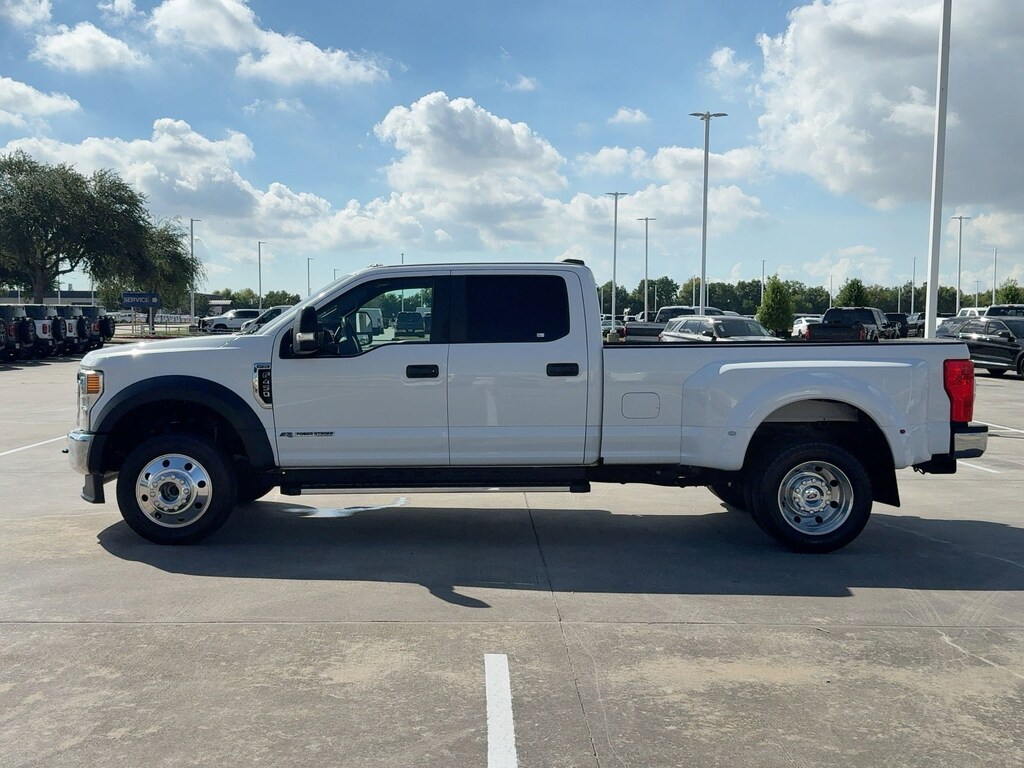 This Ford Super Duty F-450 DRW delivers a Intercooled Turbo Diesel V-8 6.7 L/406 engine powering this Automatic transmission. ENGINE: 6.7L 4V OHV POWER STROKE V8 TURBO DIESEL B20 -inc: manual push-button engine-exhaust braking and intelligent oil-life monitor (STD), Wireless Phone Connectivity, Wheels: 19.5" Forged Polished Aluminum -inc: 4 aluminum outer and 2 steel inner, bright hub covers/center ornaments.