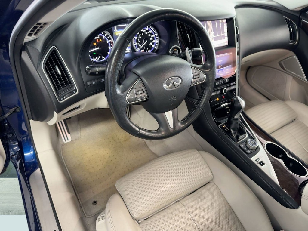 Classic styling and large sedan proportions yield a distinguished yet sensible appearance. Turbocharger technology provides forced air induction, enhancing performance while preserving fuel economy. This 4 door, 5 passenger sedan has just over 90,000 miles. INFINITI infused the interior with top shelf amenities, such as: a power seat, rain sensing wipers, and remote keyless entry. Under the hood you'll find a 6 cylinder engine with more than 300 horsepower, and for added security, dynamic Stability Control supplements the drivetrain.